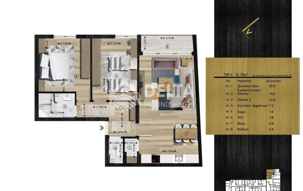 Banesa eshte ne katin e 8-te, siperfaqe 92m2.