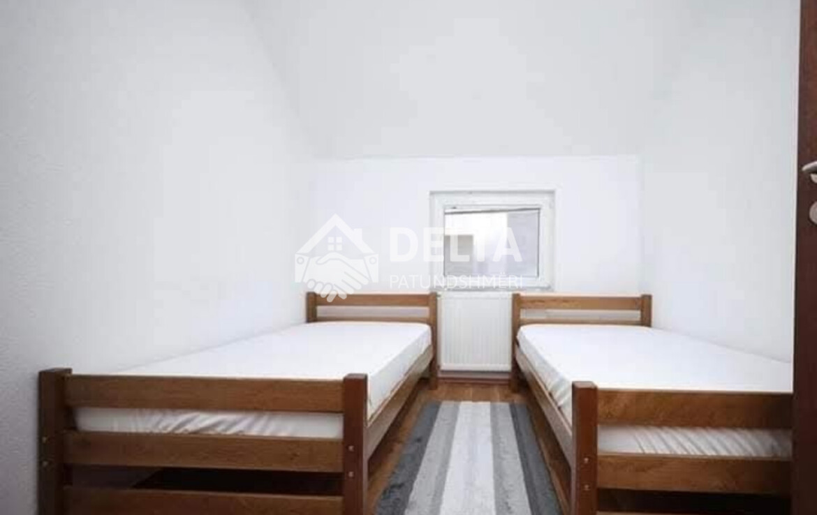 Banesa ka nje siperfaqe prej 140m2 dhe gjendet ne katin e parë, e mobiluar komplet dhe e gatshme per banim. Ka kete formacion: Sallon – 2 Kuzhina – 5 Dhoma Gjumi – 2 Banjo – 2 Ballkona. E pershtstshme per Familjarë, student/e. Çmimi: 500/€ + Depoziti.
