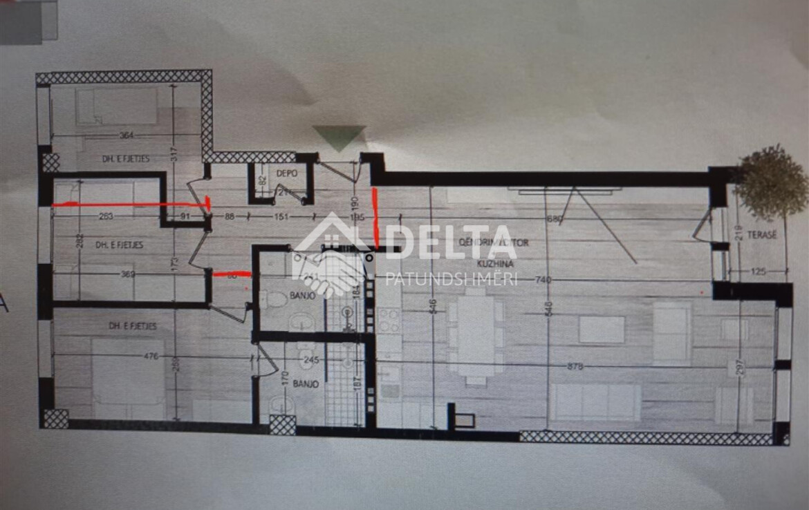 Shtesat: Ballkon, Depo brenda banesës + Garazhë dhe Depo e dytë (të përfshira).