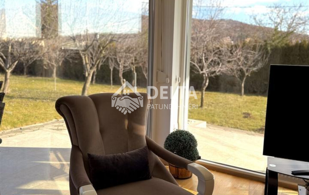 Shtëpia ka sipërfaqe 210 m² banim dhe 30 m² garazh. Jepet e mobiluar, me oborr prej 600 m² ose 1250m2 varësisht nga marrëveshja.